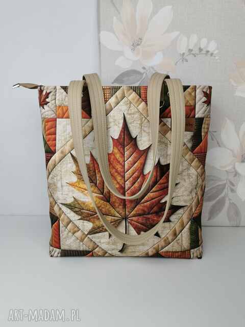 Torebka damska shopper bag torebka na ramię zamykana - liść klonu patchwork