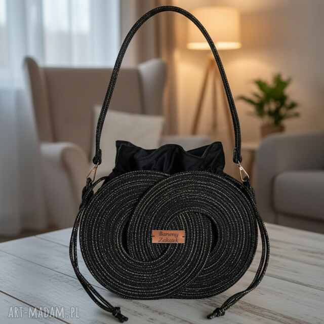 handmade torebka pierścienie ze sznurka czarno złota rękodzieło tps01 - 14