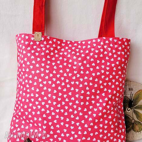 Torba na zakupy - zakochana ogrodniczka serce czerwone. Rocznica ślubu niepowtarzalna. Seria nowe przeszycie to nasze produkty, które oparte są na resztkach tkanin nowych lub tzw odzysku, nic u nas nie może się zmarnowaćwyprzedano