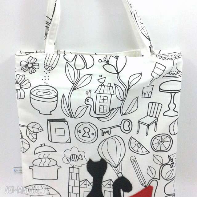 Torba wykonana z pięknego białego grubego płótna w ciekawe wzory.