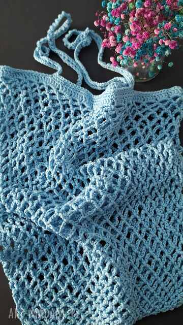 handmade siatka na zakupy, torba - błękitna, jasnoniebieska - na ramię