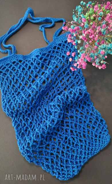 ręcznie wykonane siatka na zakupy, torba - chabrowa - na ramię, robiona