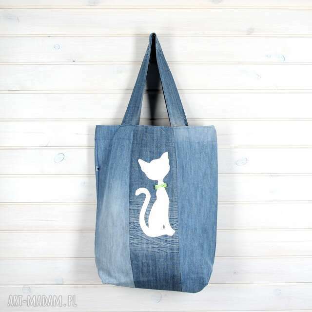 ręczne wykonanie torba dżinsowa z kotem kot dla kociary