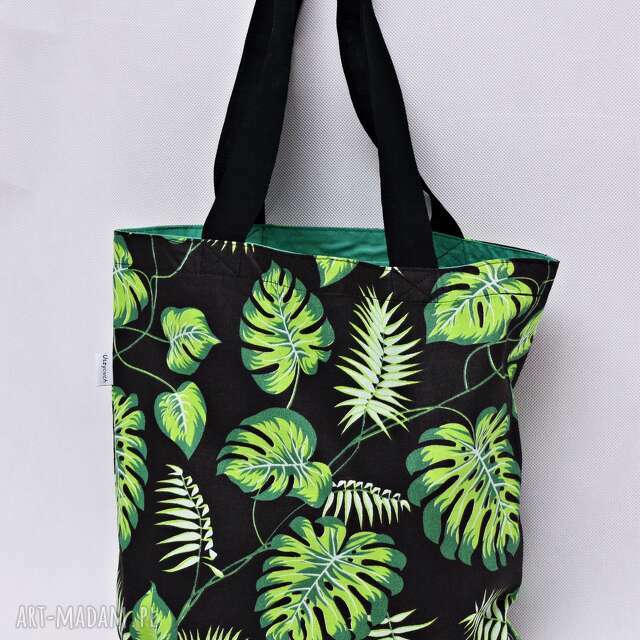 Ekologiczna torba na zakupy uszyta z bawełny 100% z motywem w liście monstera i bawełnianą podszewką.