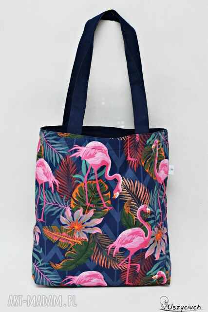 Ekologiczna torba bawełniana na zakupy Shopperka flamingi na granatowym tle
