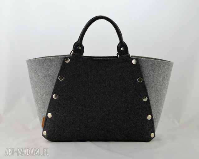ręcznie robione filcowa torebka grafit i szary z napami - mała
