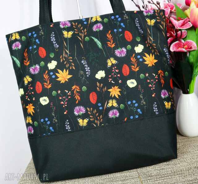 szybka wysyłka🏵️ 🌸🔸🌿 mandala kwiatów - czarna torba bawełniana z. Na zakupy handmade Intensywne odcienie błękitu, czerwieni, żółci i zieleni tworzą harmonijny89,99 zł