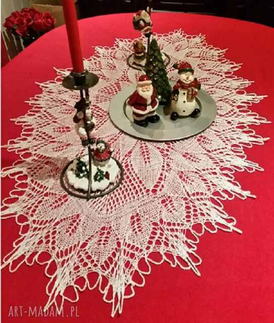 szybka wysyłkaBieżnik koronkowy. Nakrycia bieżnik Serwetka - o pięknym wzorze, w kształcie owalu, wykonany ręcznie, Wymiary 35 cm x 57 cm75,00 zł