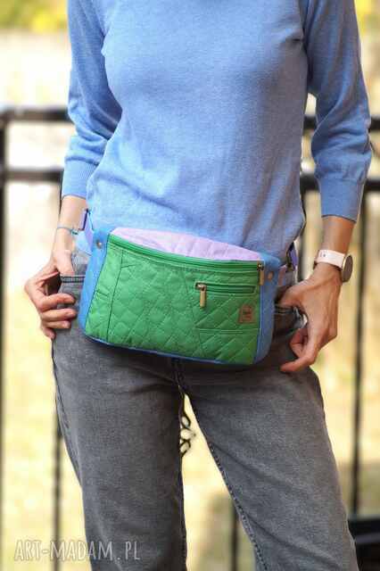 szybka wysyłkaNerka l w piórka. Nerki handmade Saszetkanerka do noszenia na biodrach, błękitnego, turkusowego, Na przodzie metka z logo, 16 cm149,00 zł