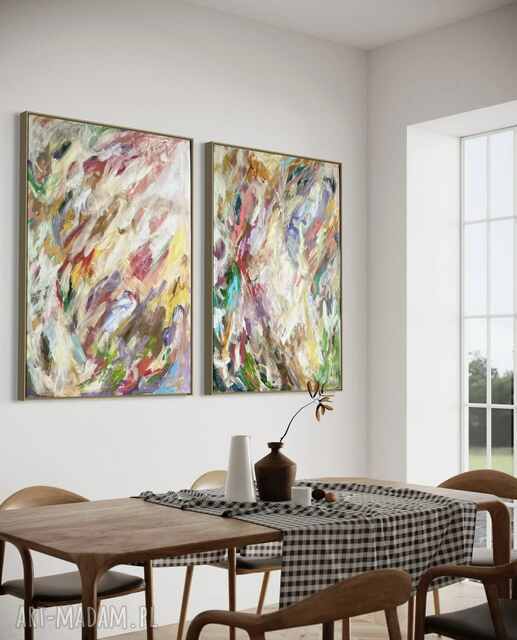 Wydruk w rozmiarze 100x70 cm każdy obraz, wysokiej jakosci wykonany na podstawie ręcznie malowanego obrazu abstrakcyjnego mojego autorstwa. Cena dotyczy wydruku na papierze.