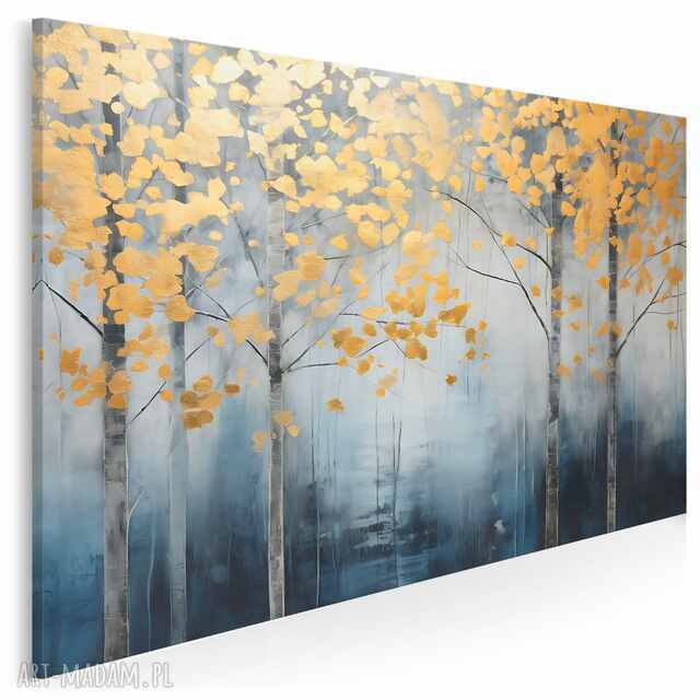obraz do salonu - abstrakcyjny las złote liście drzewa - 70x50 cm (103801)