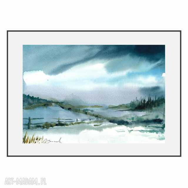 akwarela "zima", malowana ręcznie, format a4
