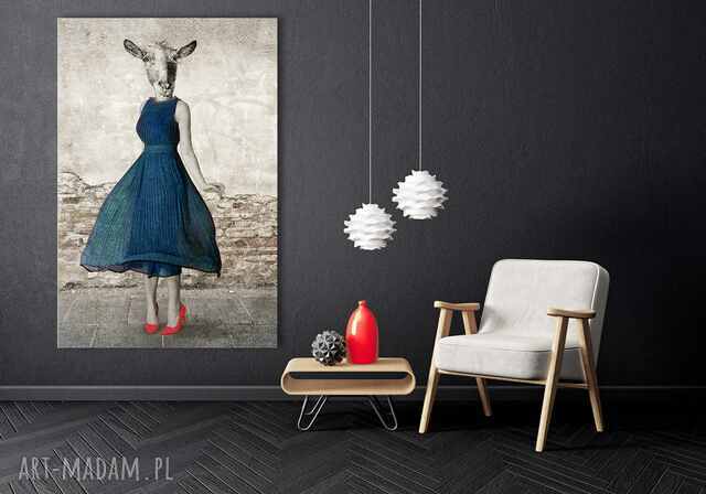obraz drukowany na płótnie pani koza w granatowej sukience - duży format 80x120