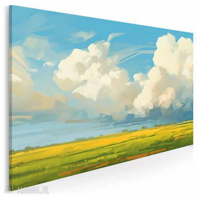 obraz do salonu - krajobraz wiejski pola i chmury pejzaż - 70x50 cm (104901)