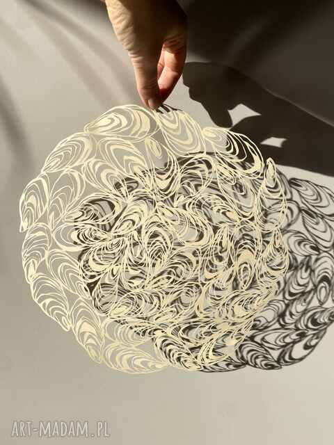 Ręcznie wycinana abstrakcyjna praca z beżowego papieru.