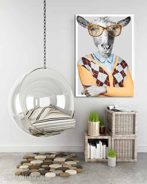 nowoczesny obraz drukowany na płótnie - koza grazynka w gustownym sweterku