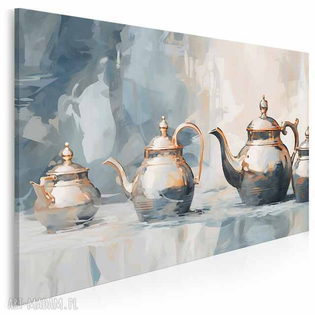 Obraz do kuchni - MARTWA NATURA CZAJNIKI METALOWE NACZYNIA - 70x50 cm (104501)