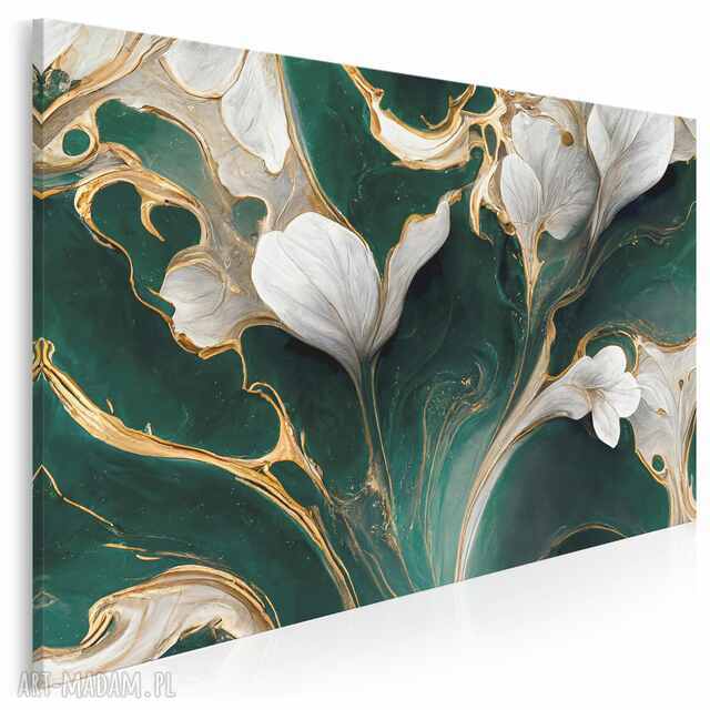 obraz do salonu - białe kalie abstrakcja złote akcenty - 70x50 cm (100201)