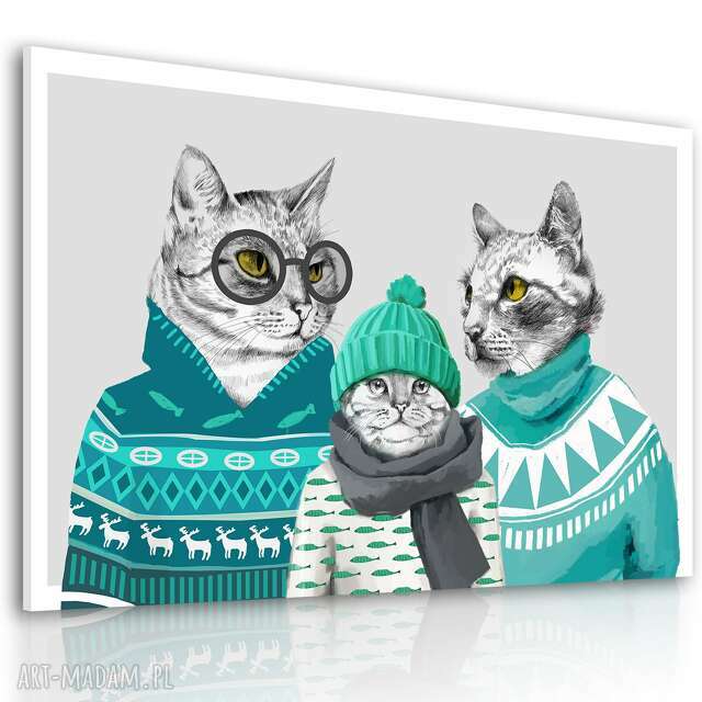 obraz drukowany na płótnie koty w ubraniach rodzina formacie 120x80cm 02385