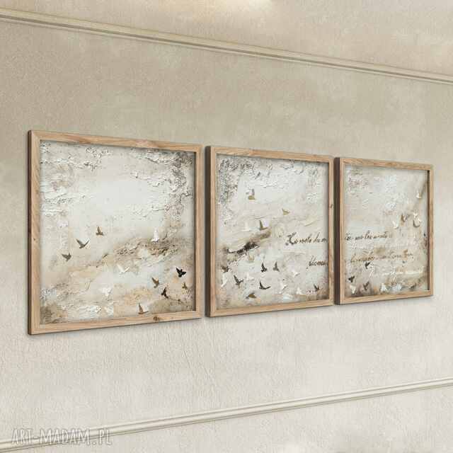 "zatrzymane w czasie" - tryptyk w odcieniach beżu i brązu w stylistyce surowej