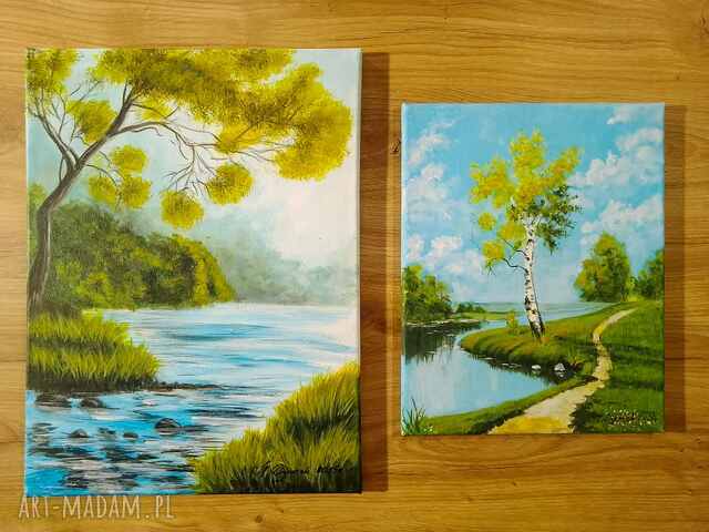 Wprowadź naturę do domu - Twoje wnętrza Ci za to podziękują. Jeden niepowtarzalny zestaw o naturalnej, kojącej palecie barw wprowadzającej relaksujący nastrój. Przedstawia klasyczny, polski pejzaż skąpany w wiosenno-letnim słońcu. Kojąca podróż brzegiem wody, a główny motyw stanowią drzewa symbolizujące życie i harmonię. Kompozycja składa się z dwóch różnych formatów, które razem tworzą harmonijną opowieść o spokoju i pięknie natury. Spójność tematyczna i oryginalne zestawienie żywych kolorów potęgują pozytywny odbiór przedstawionych widoków. To ciekawy duet, który wprowadzi do środka powiew piękna przyrody. Obrazy oryginalnie wypełnią i udekorują ściany salonu, sypialni, czy biura. Idealne również jako prezent na każdą okazję. Idealnie wkomponują się we wnętrza typu: classic, rustic oraz scandi.