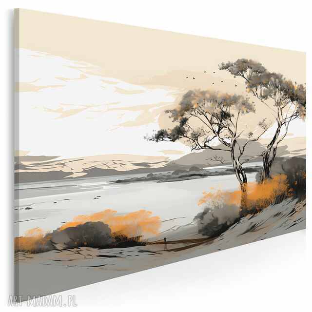 obraz do salonu - minimalistyczny pejzaż drzewo nad jeziorem - 70x50 cm (103901)