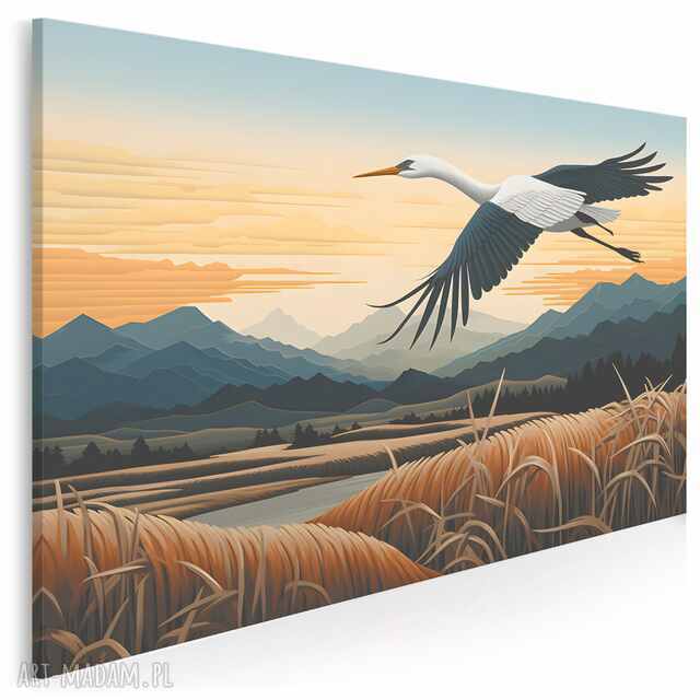 Obraz do salonu - PTAK W LOCIE ŻURAW GÓRSKI KRAJOBRAZ - 70x50 cm (106401)