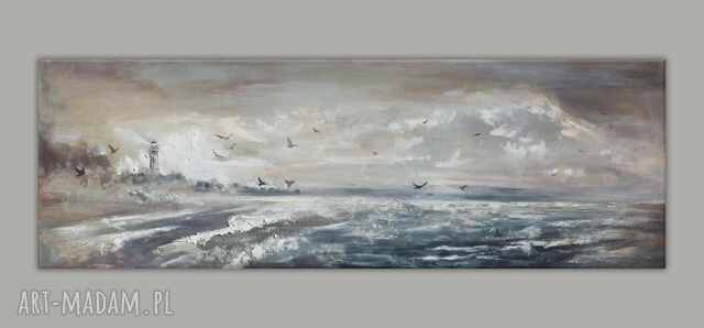 Sztorm nad morzem - morski pejzaż panoramiczny ze strukturą w palecie zgaszonych barw 120 x 40 cm