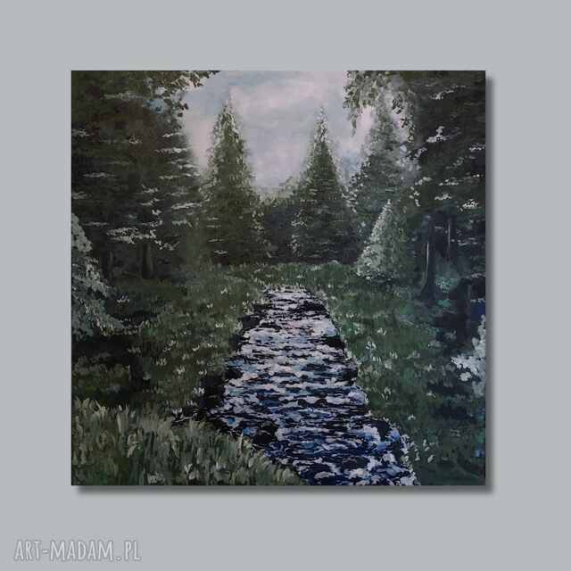 Przenieś się do świata pełnego spokoju i harmonii z obrazem „W ciszy lasu”. Ta nastrojowa scena zaprasza do zanurzenia się w głębię zieleni, gdzie delikatny szmer strumienia i miękkie światło przenikające przez korony drzew tworzą atmosferę ciszy i wyciszenia. Obraz idealnie uchwycił moment, kiedy natura zdaje się trwać w bezruchu, pozwalając widzowi poczuć magię leśnej samotności.
