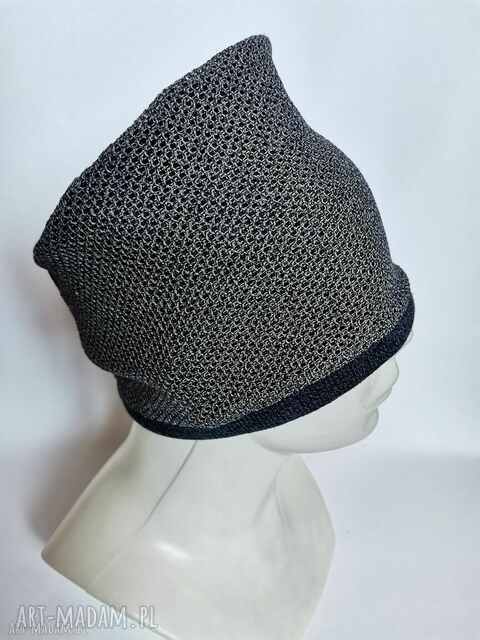 ręcznie wykonane szeroka opaska szaro granatowa ciepła na podszewce box 33
