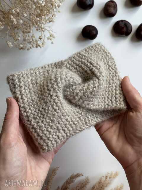 handmade wełniana opaska twist na głowę 100% alpaka - beżowa