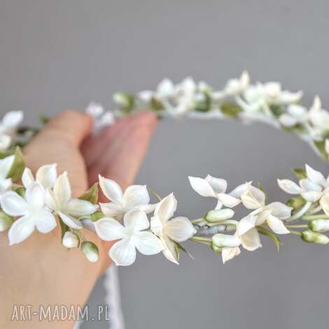 darmowa dostawa-10%szybka wysyłkaPoranna rosa - wianek z białymi kwiatami i zielenią. „poranna rosa” to ręcznie wykonany wianek na głowę, który emanuje świeżością i naturalnym wdziękiem125,00 zł
