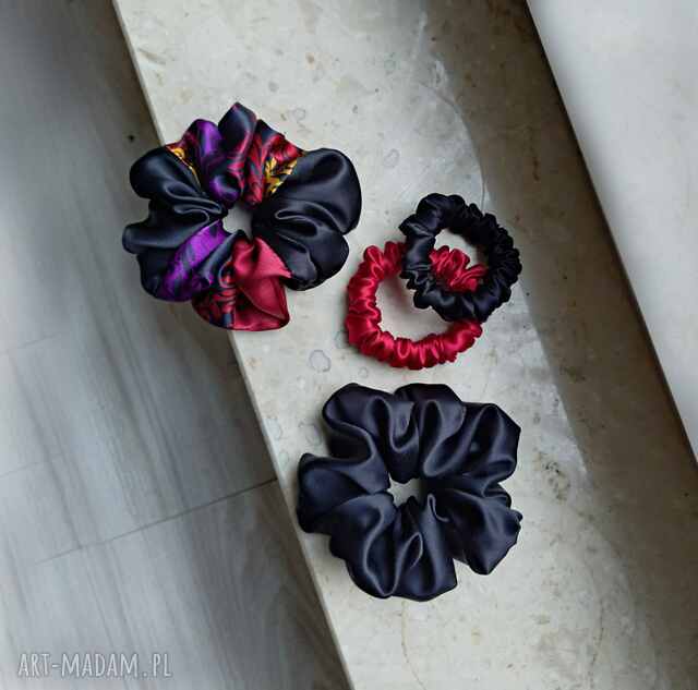 All in red - zestaw jedwabnych scrunchie - nasycona malina. Ozdoby do włosów handmade Jedwabnych gumek do włosów typu scrunche w kolorze nasyconej, Miękka, Stylowe, eleganckie119,00 zł