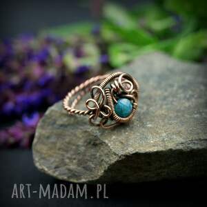Agat regulowany pierścionek z miedzi. Pierścionek wykonany w pracochłonnej technice wire wrappingu, Wymiary, rozmiar uniwersalny120,00 zł