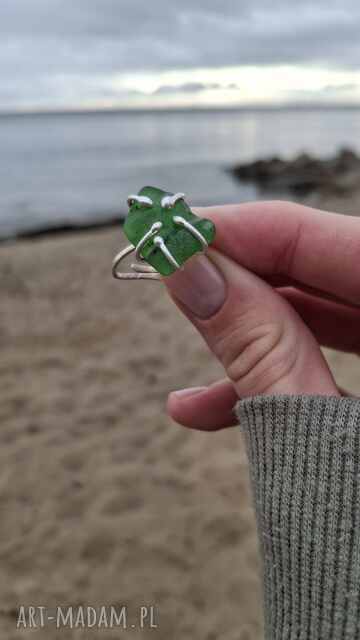 Pierścionek szkło morskie