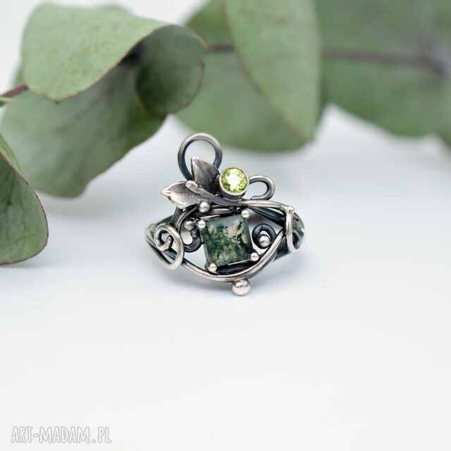 darmowa dostawaNa święta upominki pierścionek z listkami i ametystem. Zieleń - i - fiolet pierścionki Wyjątkowy pierścionek w leśnym, lekko baśniowym stylu, fioletowym ametystem, 2 mm, Waga550,00 zł