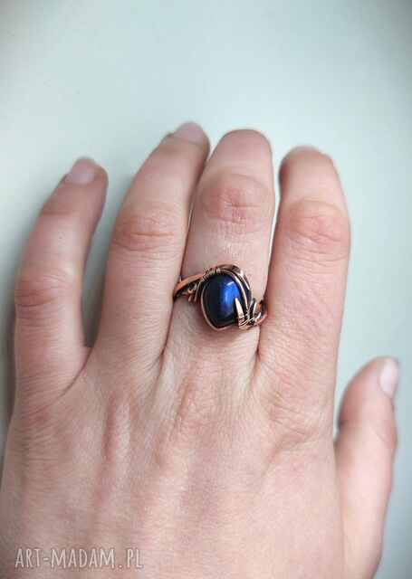 pierścionek z labradorytem, miedziany, regulowany