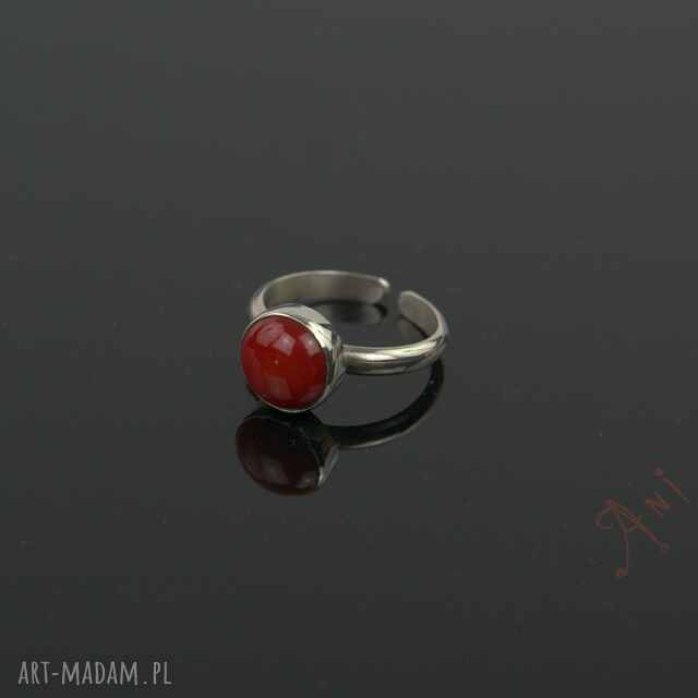 Regulowany pierścionek z koralem. 925 i koral, Wymiary kamienia, 10×10 mm, Szerokość obrączki, 3mm355,00 zł