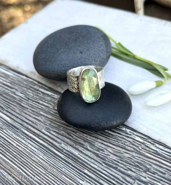 szybka wysyłkaKwiatowa obrączka z drobnym malachitem a1010. W jej centrum umieszczony został malachit o średnicy 8 mm, Materiały, srebro 925, malachit516,00 zł