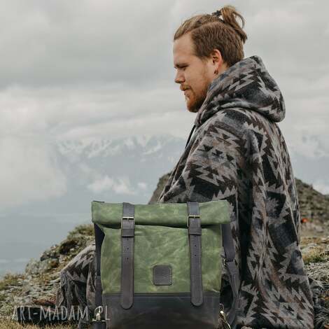 szybka wysyłkaZielony plecak z bawełny woskowanej i skóry rolowany. Zielono brązowy plecak vintage z woskowanej bawełny i skóry crazy horse, Niepowtarzalny Styl z Naturą w Tle, ✔ Skóra Crazy Horse490,00 zł