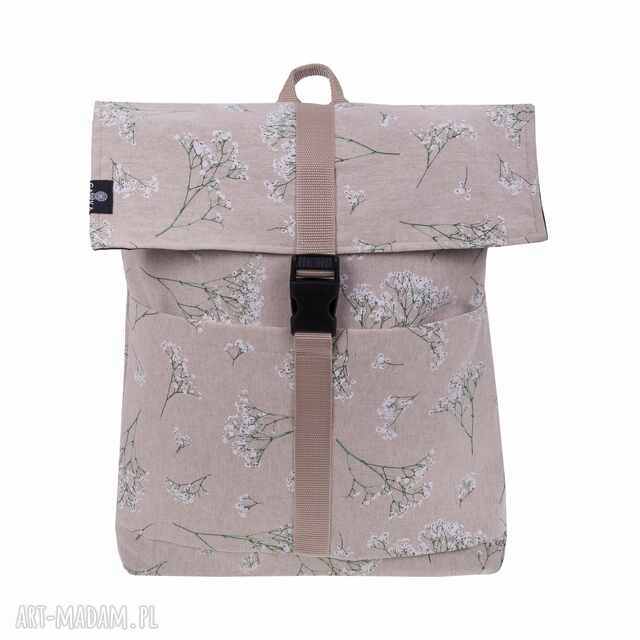 Worek kwiatowy khaki. Plecaki handmade Mocnej bawełny z w kwiatowym motywem z przodu, Kobiecy a przy okazji na tyle neutralny75,00 zł