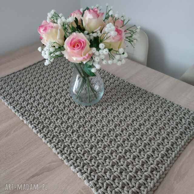 Bieżnik o wymiarach 35cmx65cm, wykonany metodą szydełkowania z polskiego sznurka bawełnianego 5mm.