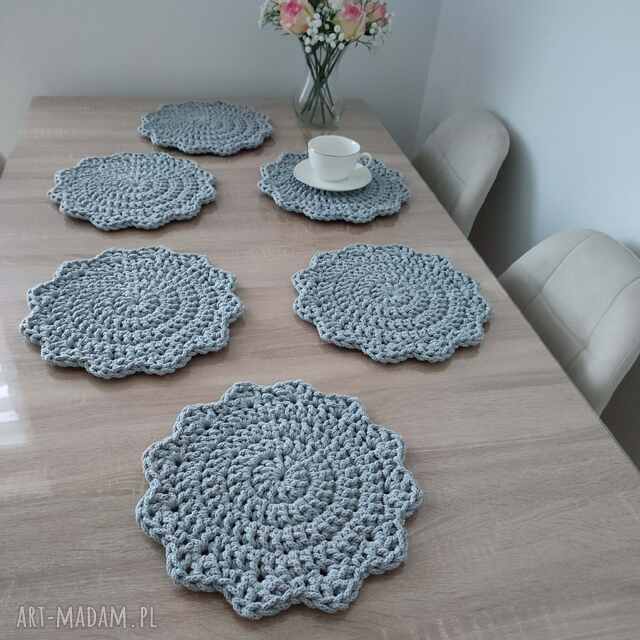 handmade komplet podkładek pod talerze szydełkowych ze sznurka 6szt - 30cm
