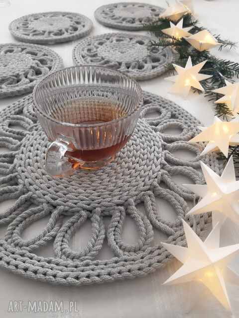 Komplet podkładek szydełkowych pod talerze ze sznurka 8szt-. Podkładki handmade Komplet podkładek - 8 sztuk o średnicy 32cm, Idealne do kuchni lub jadalni480,00 zł