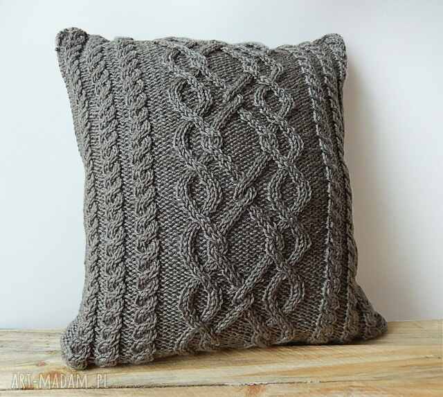 Ta poduszka została wykonana na drutach z bardzo miękkiej, nieuczulającej, wysokojakościowej włóczki akrylowej. Kolor jest ciemnoszary w ciepłym odcieniu. Charakterystyczną cechą jest piękny i niepowtarzalny wzór warkoczowy. Ponadto włóczka "nie drapie".