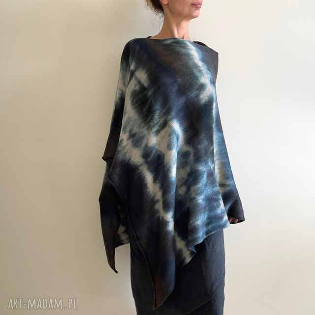 Unikatowe, ręcznie barwione ponczo z wełny merino. Uniwersalne, na każdy sezon, na każdą sylwetkę i rozmiar. Do noszenia na co dzień i na wieczorowe wyjście. Doskonałe jako wierzchnie okrycie na wiosenne, letnie, czy jesienne chłody, a w zimie w charakterze swetra. Idealny na prezent dla Niej.