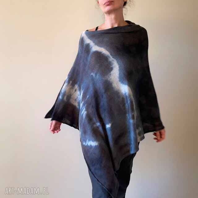 Unikatowe, ręcznie barwione ponczo z najwyższej jakości wełny z merynosów. Uniwersalne, na każdy sezon, na każdą sylwetkę i rozmiar. Do noszenia na co dzień i na wieczorowe wyjście. Doskonałe jako wierzchnie okrycie na wiosenne, letnie, czy jesienne chłody, a w zimie w charakterze swetra. Idealny na prezent dla Niej.