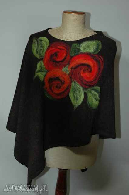 Ponczo filcowane wełną zdobione. Poncho handmade Wzory na wyrobach wykonuję ręcznie pracochłonną metodą filcowania na sucho159,00 zł