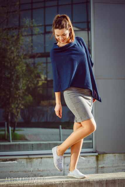 PONCZO basic z dzianiny w kolorze granatowym