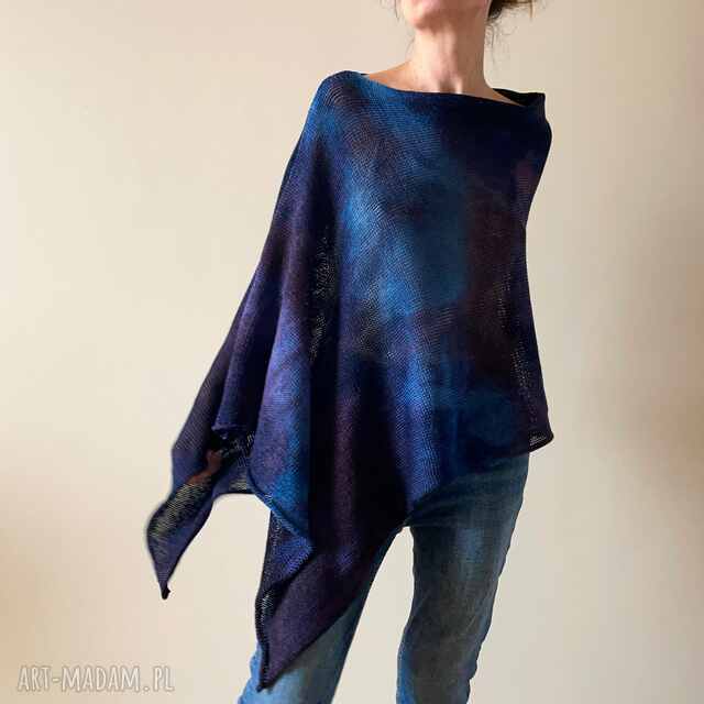 ręcznie zrobione narzutka bawełniana niebieski&bakłażan poncho